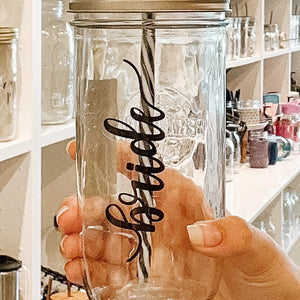 We use 24 oz / 750ml wide mouth mason jars as our tumbler base, so if you'd like any specialized lids or extra patterns or colors - just make sure you order them in the wide mouth size. :)