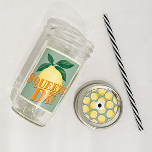 A bold lemon tumbler with retro typography and a vibrant lemon-patterned lid. Dishwasher safe and made for citrus-fueled days.