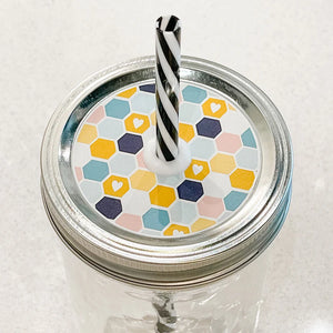 We use 24 oz / 750ml wide mouth mason jars as our tumbler base, so if you'd like any specialized lids or extra patterns or colors - just make sure you order them in the wide mouth size. :)