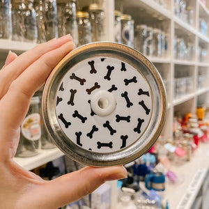We use 24 oz / 750ml wide mouth mason jars as our tumbler base, so if you'd like any specialized lids or extra patterns or colors - just make sure you order them in the wide mouth size. :)