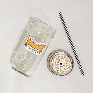 We use 24 oz / 750ml wide mouth mason jars as our tumbler base, so if you'd like any specialized lids or extra patterns or colors - just make sure you order them in the wide mouth size. :)
