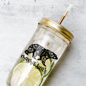 🐻 Mama Bear Floral Pattern Mason Jar Tumbler